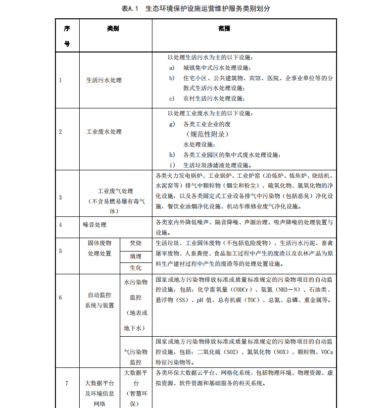 生態(tài)環(huán)境保護(hù)設(shè)施運營維護(hù)服務(wù)類別劃分
